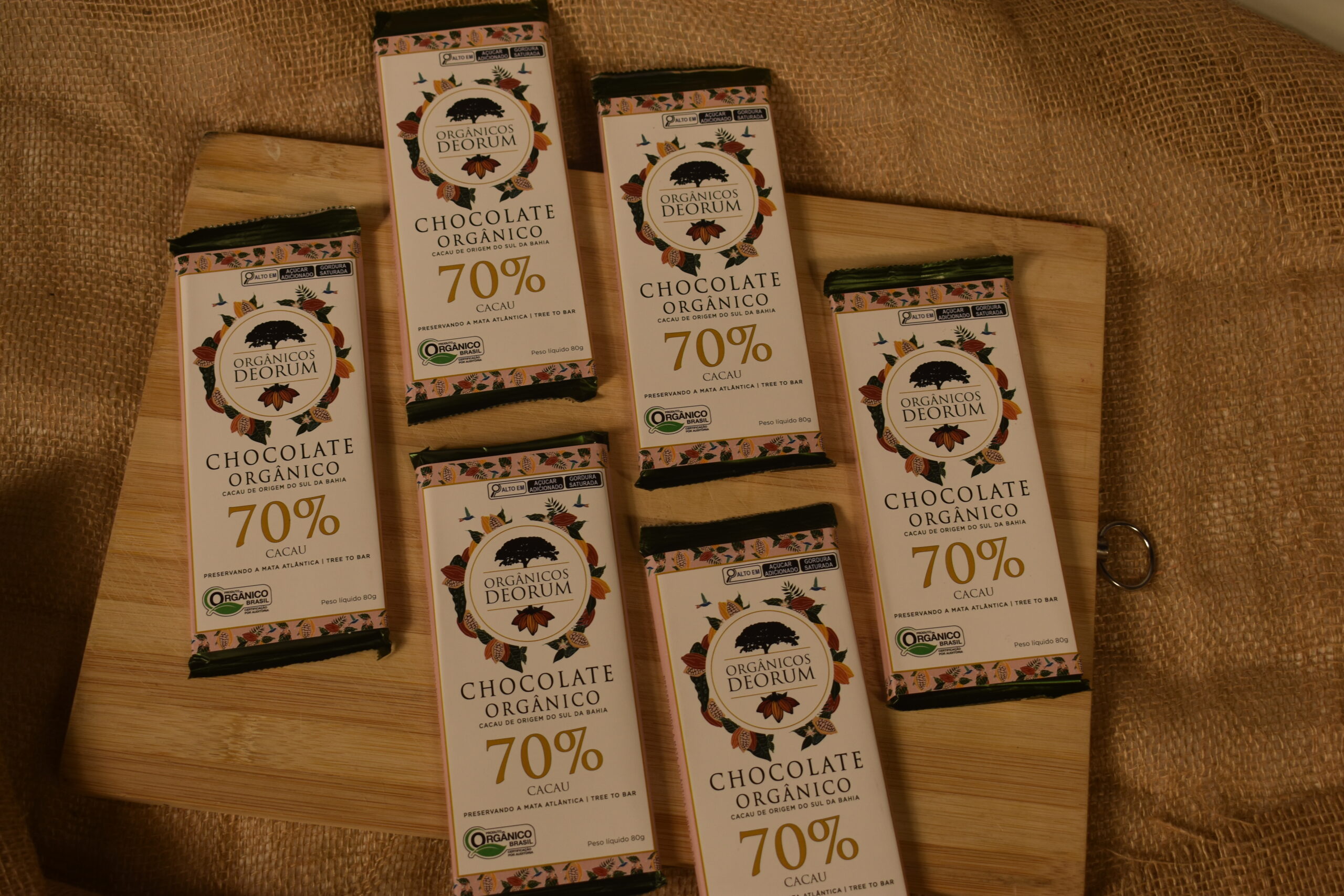Assim, a barra de chocolate orgânico – 70% CACAU da ORGÂNICOS DEORUM traz também os benefícios para a saúde originários do cacau puro de origem. E mais: temos uma legítima produção de chocolate “tree to bar”: nós plantamos, colhemos, beneficiamos e transformamos nosso cacau em chocolate. Vender nossas amêndoas transformadas em chocolate diretamente ao consumidor é motivo de muito orgulho.